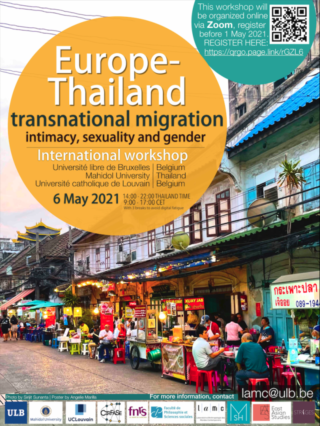 A massive migration of Thais to Europe has progressively taken place from the 1960s onwards. This migratory movement has been mainly oriented towards the reproductive, intimate domains of social life – “mixed” couple/family formation and the service sector of the economy. Women have been numerically dominating the Thai migrant population in the region and most often play overlapping roles as wives, mothers, workers, and citizens. In recent years, Europe has become the destination of kathoey (transgender women) and Thai male seasonal workers in northern Europe, which adds complexities to the emerging portraits of Thai migration, notably in terms of sexuality and gender. Despite the economic crisis that struck Europe in 2008 and the subsequent tightening of migration policies in many of its countries, the Thai migration continues to thrive, notably via the marriage and family reunification channels. At the same time, Thailand has become a long-stay tourism and retirement destination for an increasing number of Europeans. European long-stayers in Thailand are predominantly men, many of whom are in romantic/marital relationship with Thai women and, less visible, in same sex partnership with Thai gay men. Migration flows between Europe and Thailand are embedded in as well as transforming gender, social class, and family relations in both ends of migration. Taking this into account, the present international workshop aims to explore, using comparative and interdisciplinary approaches, the recent developments in this specific migration phenomenon, particularly at this time of global pandemic that hampers people’s movements across national borders. It will bring together leading scholars in Europe and Thailand who have been working in the research field of Thai migration, thereby paving the way for future scientific collaborations.